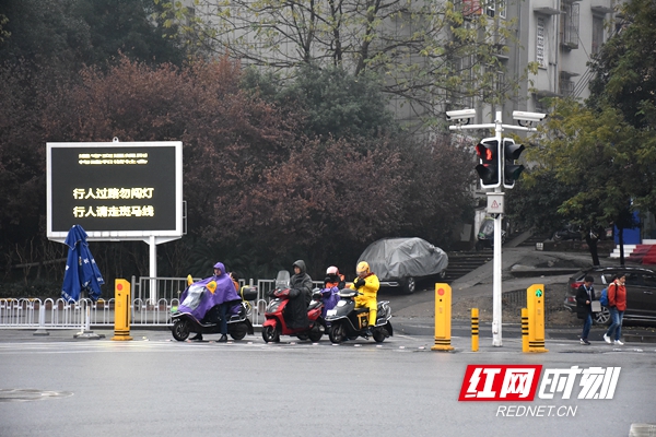 周冬是这个路口的文明交通劝导员,每天7点半他就要到此执勤。韶山北路城南路口安装“人车闯灯越线智能提醒系统”后,他目睹了这里的变化。“这个系统运行以来,路口人、车行驶分离更加清晰和规范了。大部分行人和非机动车都会按规定区域待驶候灯通行,路口通行效率得到提升,不再拥堵了。”