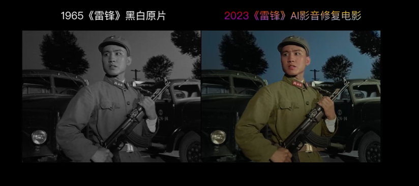 公司技术总监龙新滨介绍,团队开创性地融合AI智能修复与人工精雕细琢,打通从技术研发到应用落地的上游环节。2021年3月,企业首个修复作品彩色版《雷锋》,在雷锋故乡长沙市望城区影院播放,尽显红色经典与数字技术融合魅力。